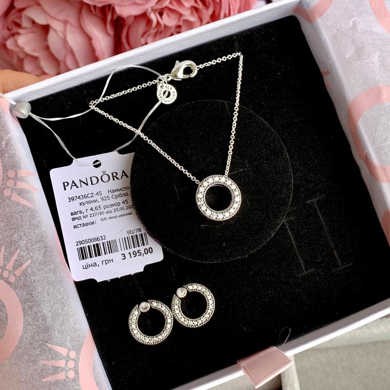 Набор Пандора «С логотипом Пандора и паве» ▫️Серьги: Цена: 1150 грн Вес: 3,1 гр Материал: серебро 925, цирконий Диаметр: 1,2 см ▫️Ожерелье Цена: 1650 грн Вес: 4,65 гр Материал: серебро 925, цирконий Длина: 45 см Комплектация: коробка, пакет Пандора и бирка (входит в цену) Состояние: новое Отправляю шафа доставкой или по предоплате 100 грн.