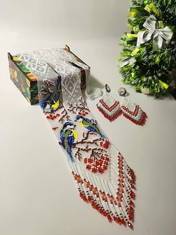 Гердан из бисера/синички/гердан ручной работы/украшения/украшения