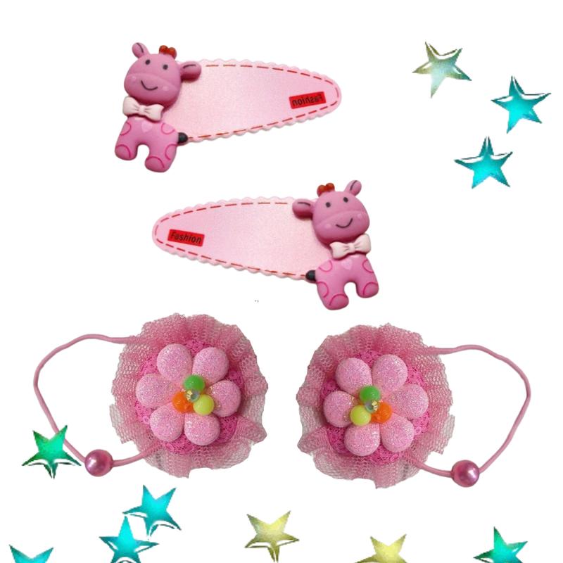 Набір 4 шт гумка для волосся та шпилька тік-так 5.5см princess (рожевий)