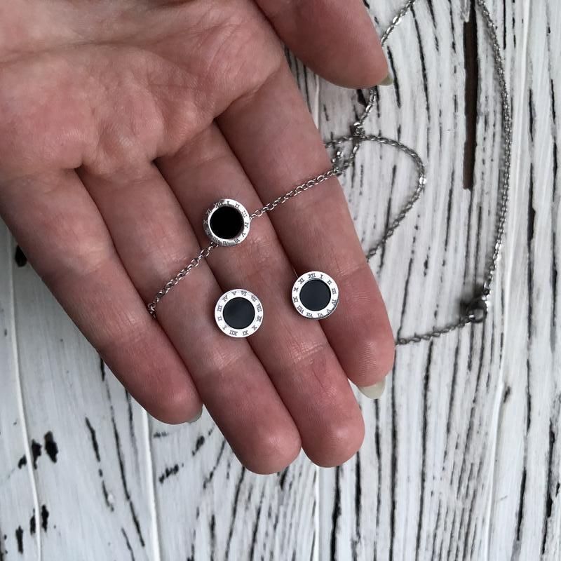 До набору входять сережки гвоздики діаметром 10 мм і кулон діаметром 9 мм із ланцюжком 45 см. Неймовірно стильно та лаконічно виглядає
