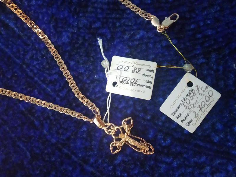 Набір ланцюжок 50*3,5 мм + хрестик позолота 585 проби