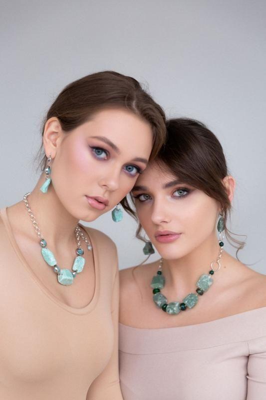 Эксклюзивный комплект украшений из необработаного натурального Нефрит с гиппоалергенной фурнитурой. В комплекте колье и серьги Дополнительные характеристики: Комплектация: Колье и серьги Материал : Серебро
