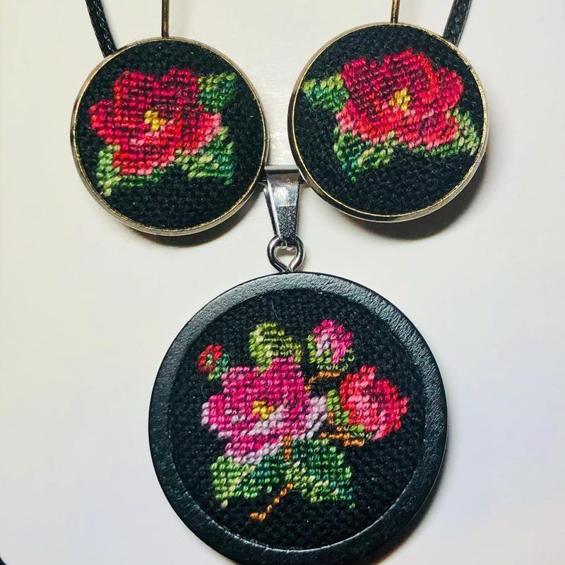 Виконано в техніці мікровишивка на рівномірній тканині 40 каунту. Основа кулону дерев’яна 3 см, сережки 2 см Дополнительные характеристики: Комплектация: Кулон и серьги Товар под заказ