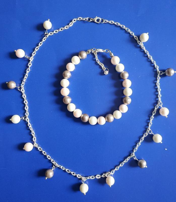 Колье + браслет из жемчуга трёх цветов. Размер колье – максимальный 44 см. Браслет 19-22 см. Возможны варианты под заказ.