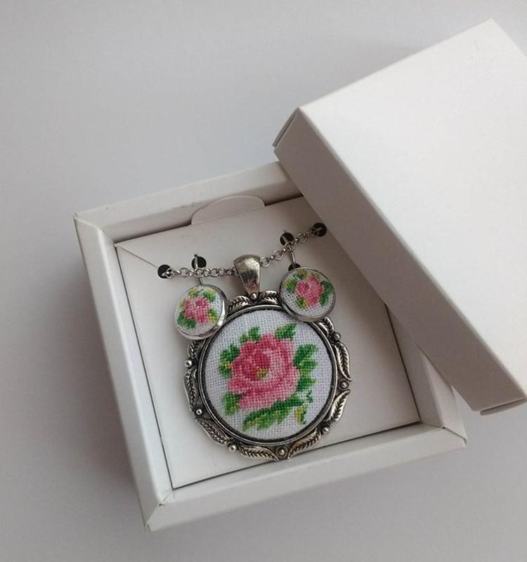 Нежные, прекрасные розы в старинном стиле. Гарнитур - серьги и кулон. Изящный и тонкий акцент придаст романтичности образу. Вышитые украшения. Миниатюра в вышивке. Старинный сюжет. Дополнительные характеристики: Комплектация: Кулон и серьги