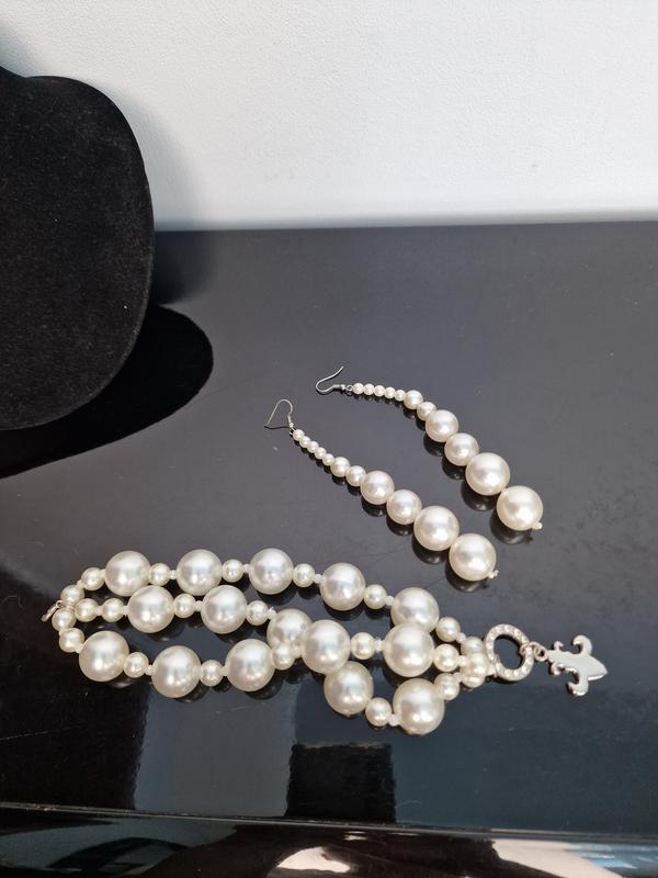Браслет и серьги. Очень крупные бусины на браслете . Длинные серьги.