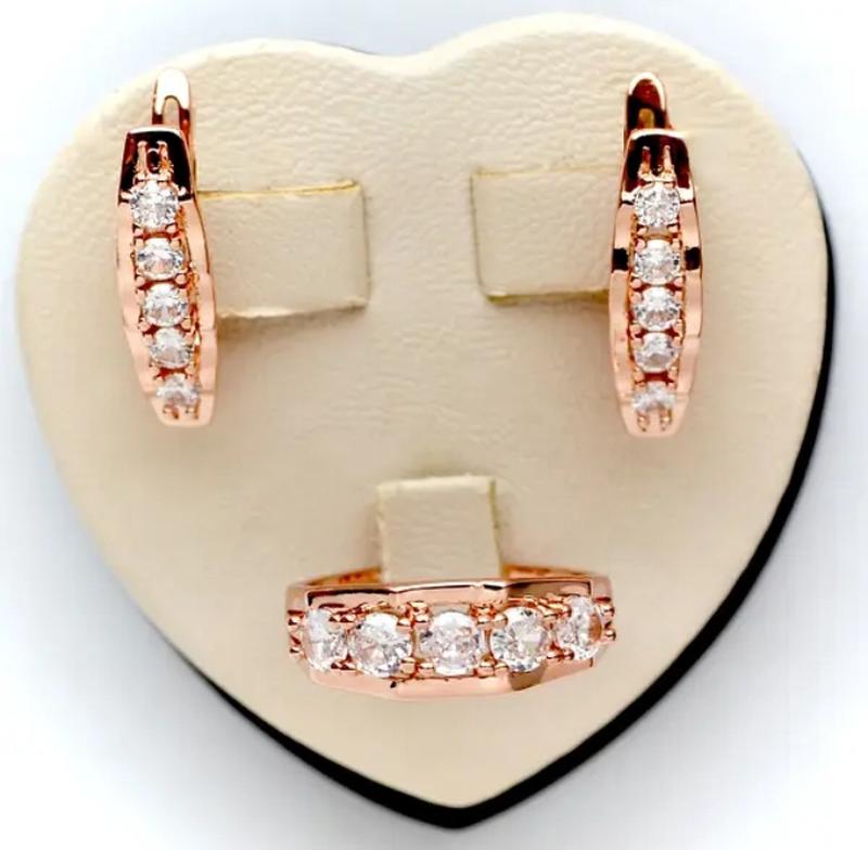 Покрытие: розовое золото 18к. Серьги размер : 22 х 7 мм Размер кольца: 18.19.
