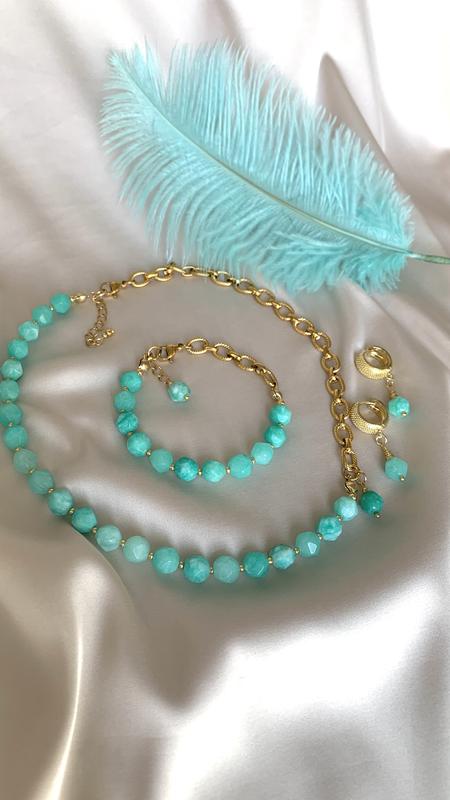 Полетом всегда хочется прибавить цвета в свой образ. Амазонит яркий, привлекательный, идеально для лета. Колье 750 грн Браслет 550 грн Серьги 490 грн