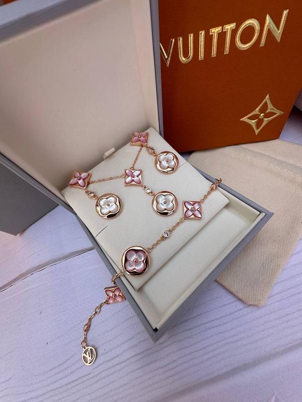 Серьги: Длина 4 см, ширина 1.5 см Сталь медицинская с позолотой Застежка гвоздик, перламутр | Браслет LV Длина 20 см размер регулируется 17 и 18 лого 1,5 см медицинская сталь с позолотой премиум серия со всеми лого | Длина кирпичики регулируется на 39, 42 см кулон 3 см медицинская сталь с позолотой
