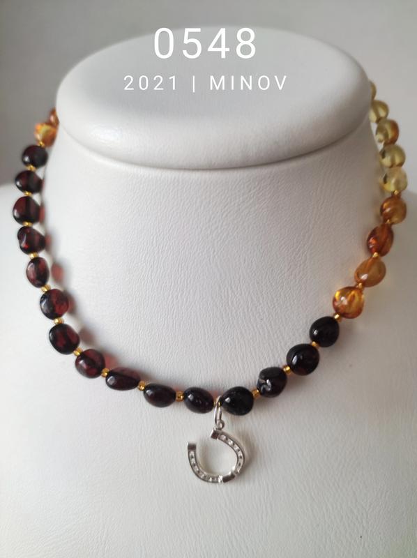 Бусы MINOV 0548 из янтаря для детей лечебные с подвеской из серебра 925 пробы. На выбор заказчика можно подобрать подвеску к бусам. Подвеска: размер 10*10мм или 10*15 мм Характеристики: Вес: 6,4-6,6 грамма; Длина нити: 31-33 см; Размер бусины: 6-7 мм. Застежка: винтовая. Длину бус можно сделать под заказ. Издревле люди носят янтарные бусы, которые благотворно влияют на кожу, тело, щитовидную железу. Но у нас мало кто знает, что янтарные бусы - это самое настоящее лечебное средство от зубной боли, дарованное самой природой. Когда у малыша прорезаются первые молочные зубки, это часто сопровождается болезненностью и дискомфортом. Одним из самых старых, проверенных методов в таком случае, являющимся традиционным в Европе, является ношение на теле янтарных бус. В Европейских странах янтарные бусы есть практически у каждого младенца. Они лежат на одной полке с погремушкой, грызунками и мазями. Это практически такой же обязательный атрибут, как аптечка для малыша. У нас в Украине на рождение ребенка дарят серебряную ложечку, а на Западе - янтарные бусы. Все что нужно сделать маме - просто надеть бусы на шею ребенка. Согреваясь теплом тела, янтарь выделяет небольшое количество янтарного масла, которое затем всасывается в кровь через кожу и оказывает свое анальгезирующее действие. У наших янтарных бус очень крепкая нить - основа. Длина бус подобрана таким образом, чтобы исключить опасность перекручивания. Застежка изготовлена из янтарного пластика, с пластиковым винтовым механизмом. Обеспечивает высокую безопасность ношения. Каждое ожерелье уникально - вы не найдете среди бус одинакового рисунка. Бусины с гладкими закругленными краями - не причиняют неудобства малышам при ношении. Детские янтарные бусы отлично подходят как для мальчиков и девочек. Детские янтарные бусы изготовлены специально для детей и очень прочны: - бусики изготовлены вручную, из настоящего янтаря; - каждая из бусинок находится в узелках; - ношение бус, в плане безопасности, ничем не отличается от ношения цепочки или крестика; - в случае разрыва выпадет только одна бусина, а все остальные бусины остаются привязанными. Меры предосторожности: Ребенок должен носить янтарные бусы только когда он находится под присмотром взрослых! На ночь янтарные бусы нужно снимать. Цвет изделия может отличаться оттенком на Вашем мониторе. Так же оттенок зависит от освещения падающего на изделие.