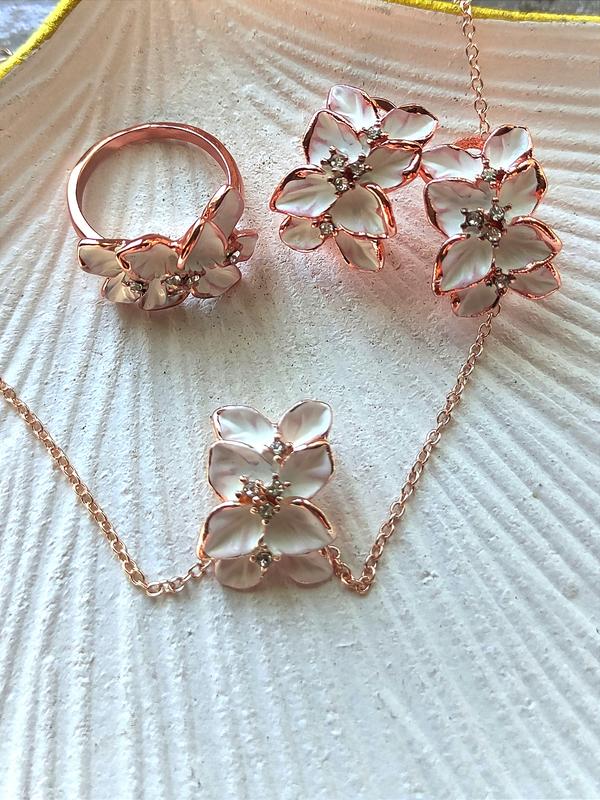 Чрезвычайно красивый, нежный сет 3 в 1 - серьги+ колье+ кольца. Много различной интересной бижутерии-заходите в гости 😍 и выбирайте 🌷