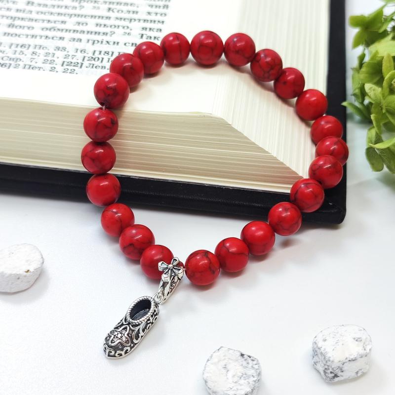 Яркий браслет из натуральных камней говлита с подвеской-башмачком святителя спиридона