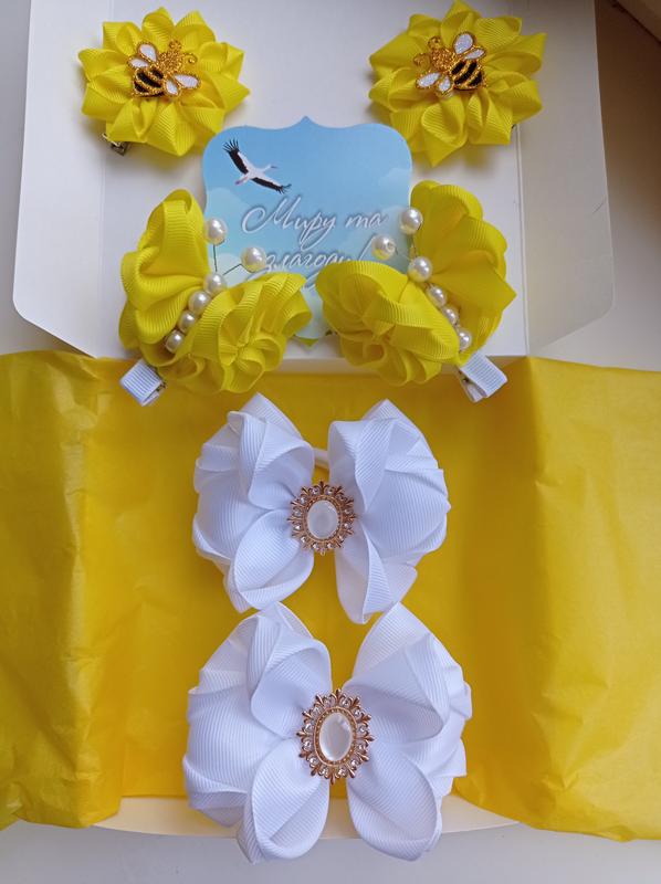 Набор бантиков,. Белые резиночки,та 2 пары заколочек. Набор -230 грн