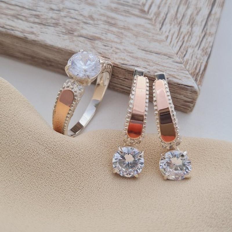 Набор серебряный с золотыми напайками и белыми цирконами разного размера Серебряный комплект с золотыми пластинами 131-0 станет идеальным украшением для любой девушки. В комплект входят кольцо и серьги, в центре которых расположены крупные круглые белые цирконы, привлекающие внимание своей чистотой и блеском. По бокам от центральных камней находятся элегантные золотые напайки, добавляющие украшениям особую утонченность и изящность. Края изделий украшены россыпью маленьких белых цирконов, которые красиво сверкают при попадании света, создавая волшебное сияние. Кольцо и серьги из серебра с золотыми напайками 131-0 идеально подойдет как для повседневного ношения, придавая образу элегантности, так и для праздничных мероприятий, становясь главным акцентом вашего наряда. Этот набор универсален и гармонично сочетается с различными стилями одежды, подчёркивая ваш утончённый вкус и индивидуальность. Серебряные серьги с золотом, имеющие надежные английские замки, будут надежно держаться в мочках ушей. Кольцо из серебра с золотыми напайками имеет следующие размеры: 15, 15,5, 16, 16,5, 17, 17,5, 18, 18,5, 19, 19,5, 20, 20,5, 21. Изготовлен комплект украшений из серебра 925 пробы и золота 375 пробы. Уход за таким ювелирным гарнитуром очень прост - раз в месяц промывайте его в мыльной воде и просушивайте полотенцем и он будет радовать вас очень долго своим блеском и сиянием. Этот комплект украшений из серебра и золота 131-0 станет превосходным подарком для любимой девушки. Он не только порадует своей красотой, но и станет символом ваших чувств, напоминая ей о вас каждый раз, когда она будет носить эти украшения. Этот изысканный набор обязательно займет особое место в её ювелирной коллекции и станет предметом восхищения окружающих. А чтобы было удобно хранить ювелирный гарнитур и меньше подвергать его механическим повреждениям подберите к нему коробочку футляр. Ответить на дополнительные вопросы по серебряному гарнитуру и выбрать коробочку футляр помогут наши консультанты. Набор выполнен из серебра 925 пробы, что засвидетельствовано клеймом ювелирной палаты Украины. Также мы сотрудничаем по системе дропшиппинг. ************* с нами красиво!