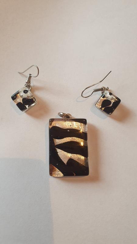 Набор из муранского стекла в чёрно- серебристых тонах.