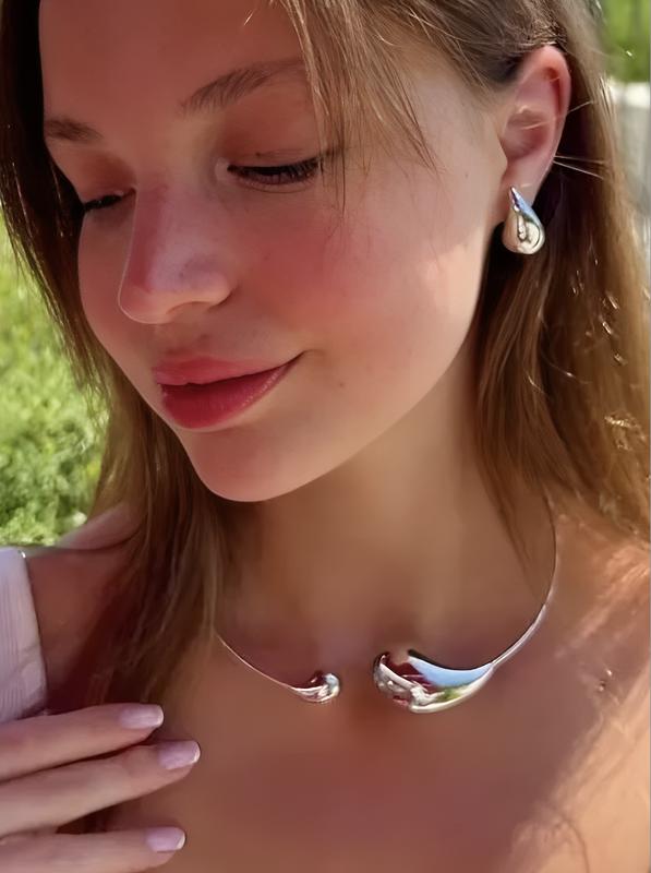 Капля сережки, подвеска - комплект капелька под серебро / набор капля колье и серьги