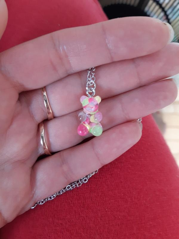Подвеска мармеладный мишка, с конфетти - длина 50см, смола, цинковый сплав
