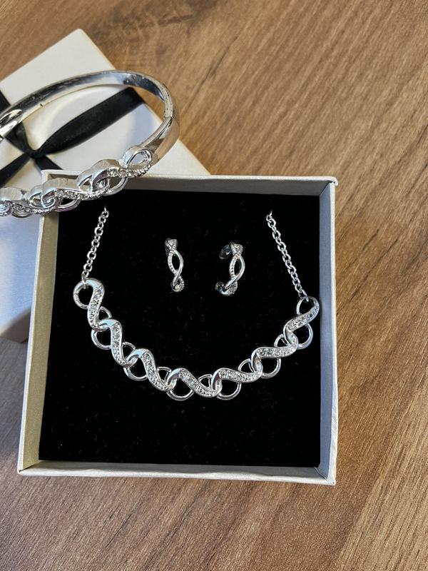 Набор украшений в подарочной коробочке. Включает в себя: подвеску, серьги гвоздички и браслет, который имеет фиксированную форму. Очень красиво и эффективно смотрится 😍
