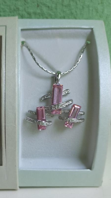 Посеребренный набор украшений с розовыми цирконами.