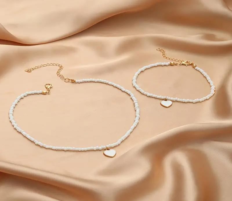 Продам новый набор украшений: браслет и ожерелье. Цвет белый, сердце двустороннее