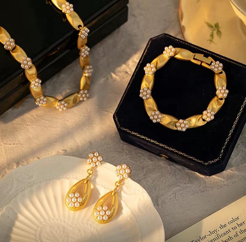 Набор из трёх предметов Колье 37 см Браслет до 19 размера Серьги длина 4.5 см Качество отличное