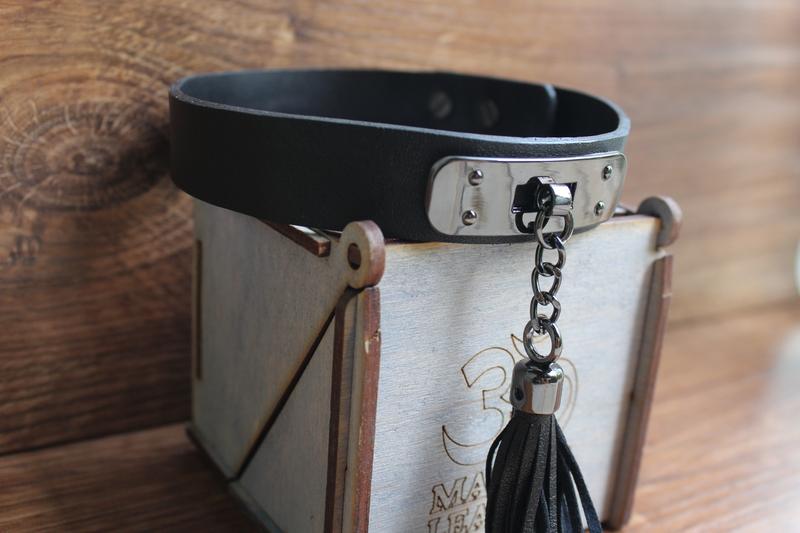 Кожаный браслет на шею чокер с кисточкой + в подарок коробка mantra leather
