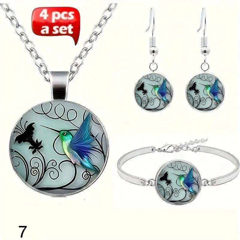 Набір модних прикрас з 3 шт.- сережки, намисто, браслет зі скляними підвісками, вінтажним декоративним дизайном павиного пера, що підходить для щоденного одягу та вечірніх виходів. Ідеальний подарунок для жінок. 1- Набір павине перо. 3- Набір дельфін. 4- Набір з морським коником. 5- Набір з годинником-совою. 7- Набір колібрі та квіти. 8- Набір амулет серебристе Древо Життя. 9- Набір місяць, дерево, сніжинки. Матеріал: сплав, скло. Висилаю: Нова пошта, Укрпошта, Meest, самовивіз. З кожної речі 10 грн відправляю на дрони. 2-3 речі в посилці вигідніше. Якщо хочете замовити 3+ речі, напишіть в чат, я дам знижку і в подарунок мішечки із органзи. Перегортайте мою стрічку і вибирайте, там багато красивого. При заказі зразу пишіть № набора.