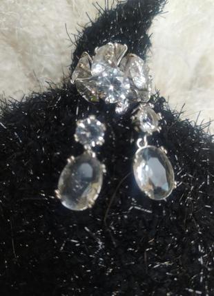 очень похож на хрусталь горный. ( без утверждения).Сплав серебра. Серьги 2 см. Кольцо 16