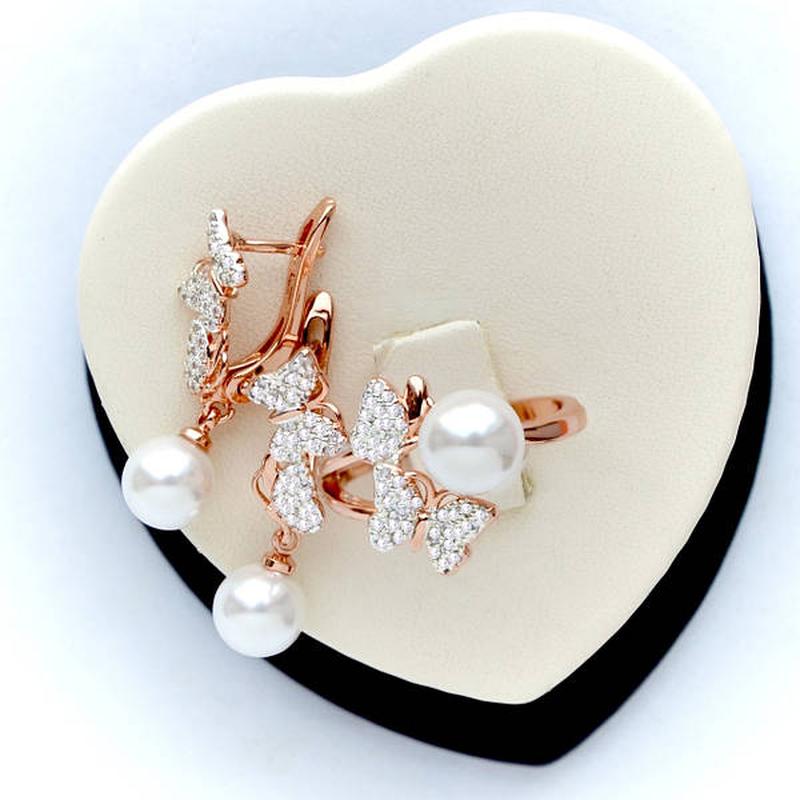 Позолочений набір комплект перли метелики медичне золото подарунок позолоченный набор жемч...