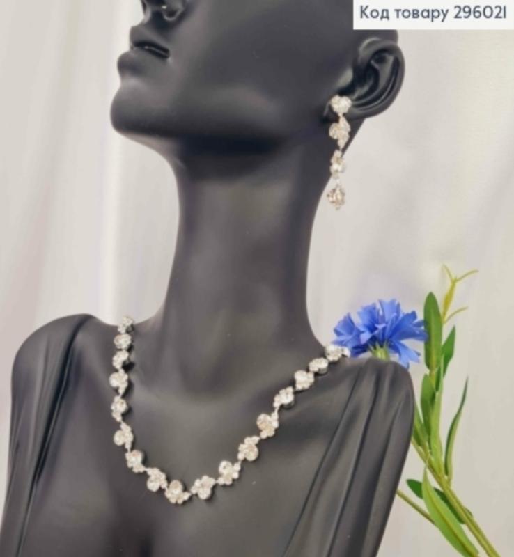 Набір: Кольє і Сережки гвоздики з блискучими камнями Срібного кольору Код товара 296021