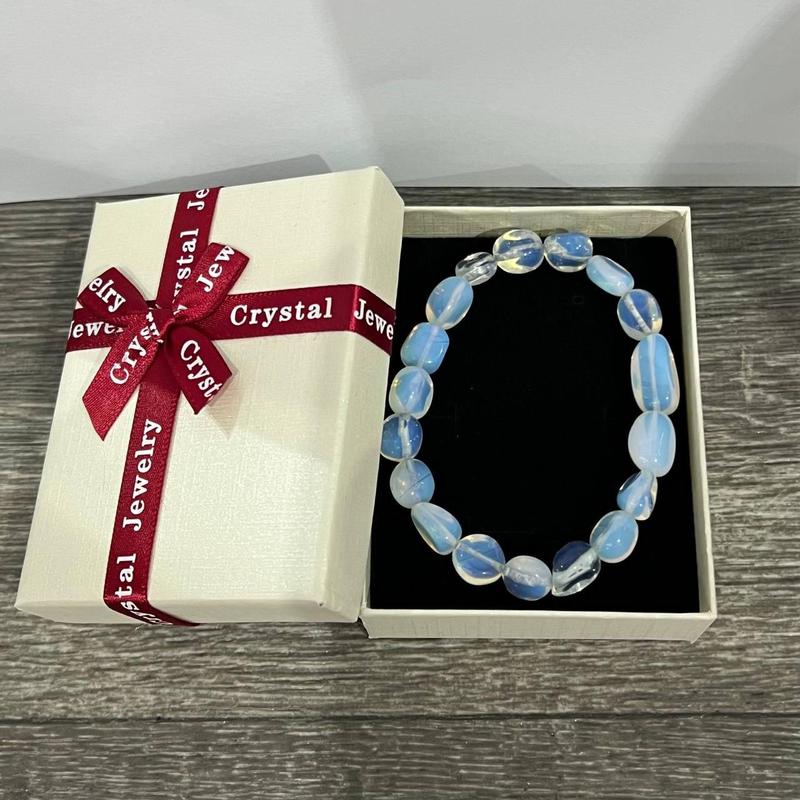 Оригинальный подарок девушке: изящный браслет "Лунный камень опалит" форма галтовка бусины 5 - 10 мм длина 18 см стрейч в подарочной упаковке Браслет выполнен из кристаллов опалита, которые добавляют ему неповторимость и блеск. Таинственные опалиты создают впечатление пленительного свечения, подобного тому, как луна отражает свет в ночном небе. Это придает браслету загадочность и привлекательность, которые притягивают взгляды окружающих. Каждый кристалл имеет свой уникальный оттенок, от игривого белого до таинственного голубого. Прочная резинка обеспечивает комфортное и надежное ношение браслета, позволяя его легко надевать и снимать. Благодаря этой особенности, девушка сможет носить его ежедневно или при особых случаях, добавляя шарма и изысканности своему образу. Это украшение - изящный подарок для особенной девушки, которая ценит уникальность и природную красоту. Браслет из Лунного камня подарит его обладательнице особое чувство волшебства и великолепия. Этот привлекательный аксессуар будет прекрасным дополнением к ее стильному образу и придаст ему загадочности и элегантности! Вот наши авторские фото и видео, снятые с реальных моделей и образцов: Наши авторские фото и видео охраняются законом! Частные случаи: кому подходит Практически каждый человек может носить украшение с Лунным камнем. Особо сильное влияние оказывает на тех, у кого знак зодиака Весы, Рак или Дева. Его не рекомендуют знаку зодиака Стрелец, Лев и Овен, то есть, представителям огненной стихии. Категорически запрещен Козерогу. Более подробно ознакомиться с описанием свойств камня можно в нашей статье ( жми - ссылка активная ). Размеры изделия небольшие и подходят большинству девушек, женщин (измерения сделаны вручную и не претендуют на высокую точность): - бусины 5 - 10 миллиметров - длина браслета 18 сантиметров. Все камни немного разные и конкретный экземпляр может отличаться от представленных на наших авторских фото! Мы можем сделать по Вашему запросу замеры изделий в Вашем заказе. Пожалуйста, обратитесь к нам за дополнительной информацией. Вы можете выбрать другой вариант комплектации украшений с помощью дополнительных фото на сайте. Пожалуйста, уточните цену и наличие выбранных вариантов перед оформлением заказа. Кроме того, дополнительно мы можем подобрать для Вас подарочную упаковку (ссылка активная) с учетом ваших пожеланий! Самый популярный вариант упаковки Вы можете увидеть на следующем нашем авторском фото: Оплаченные заказы отправляем из нашего реального магазина в Черкассах. Экспресс - доставка Новой почтой и Укрпочтой по всей Украине! Заказ легко сделать за пару минут, выберите удобный для Вас вариант - оформите заказ на сайте, заполнив простую форму заявки - или напишите нам на *****, ******** или в чат на сайте - или позвоните нам по одному из телефонов, указанных на сайте Почему нам доверяют 1. До оплаты заказа: тщательно проверяем товар, собираем на отправку и по просьбе заказчика делаем фото товара 2. Максимально быстро отправляем на почту оплаченные заказы и даем номер для отслеживания посылки 3. Напоминаем заказчикам о прибытии посылки, если они своевременно не забрали заказ на почте 4. Много лет активно ведем наши соцсети и канал Ютуб. Нас легко найти в глобальной сети по уникальному хештегу #************** 5. Получаем массу положительных отзывов
