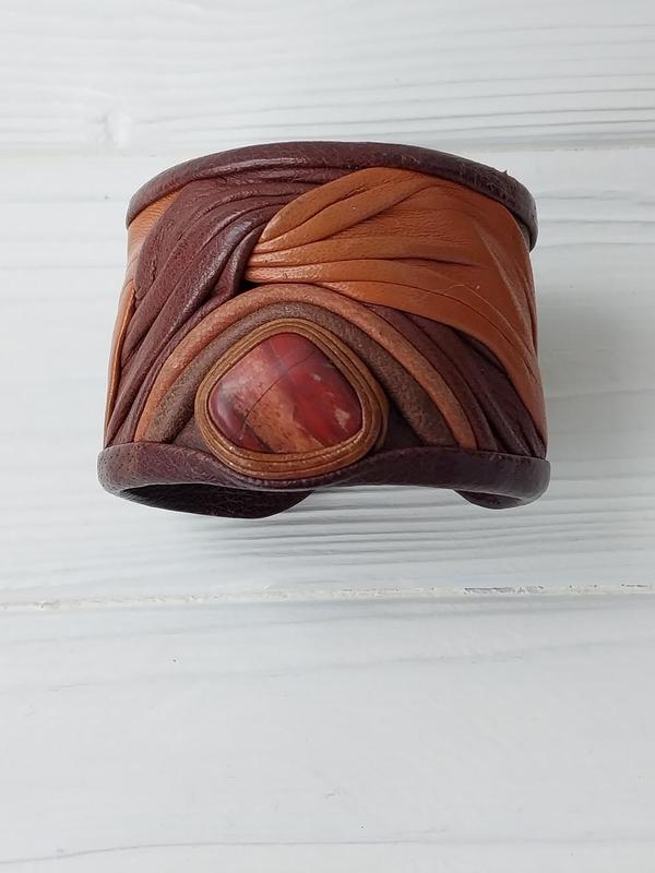Браслет шкіра та камінь яшма з натуральним каменем яшма та шкірою. індія!