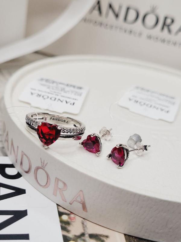 Набір пандора срібло червоне серце двойне оригінальна бірка пломба новий 925 ale pandora с...