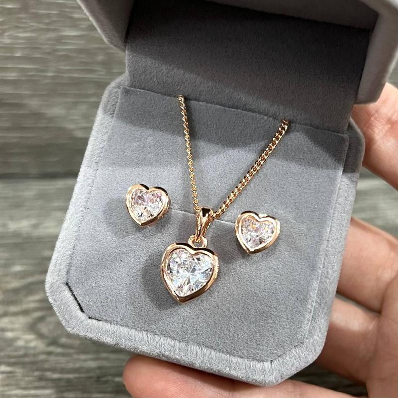 Подарок девушке набор "сияние алмазных сердечек в золоте" серьги и колье ювелирный сплав в...