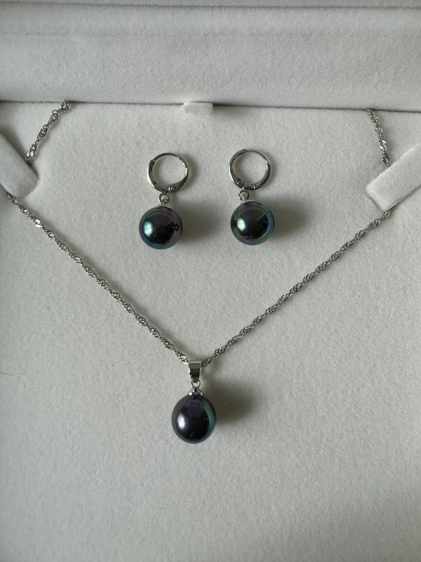 Набір прикрас із срібла зі штучною чорною перлиною.