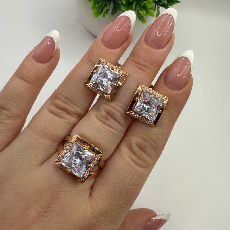 серебро 925 пробы, покрытое позолотой. вес кольца 4.78 гр. вес сережек 5.96 гр. размер кольца изготовим тот, который нужен именно Вам.