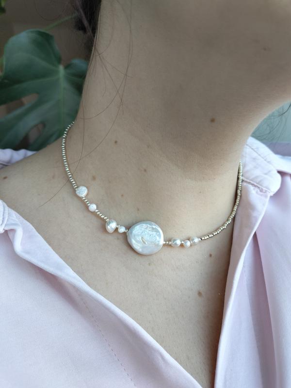 Набор украшений, чокер, серьги, минималистичный набор, чокер из жемчужин
