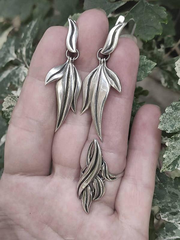 Набор сriбной 925 проби пробы, бирки, опломбированные. Вес кольца 4,9 гр Вес серег 9,8 гр Длина серьги отод застёжки 3,5 см Размир кольца 18,0, 18,5