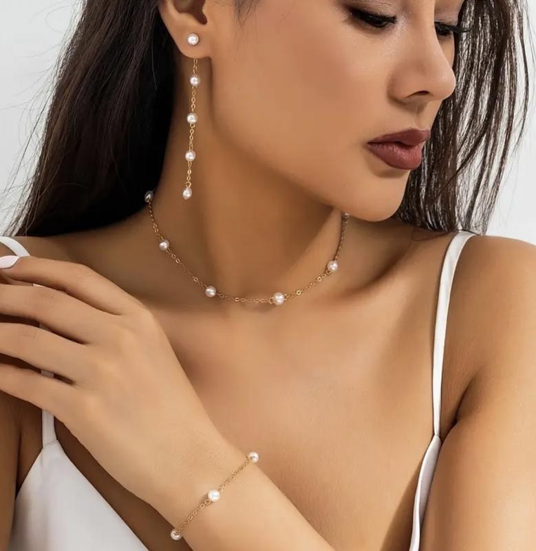 Жіночий набір прикрас браслет на руку ланцюжок зі штучних перл на шию сережки женские брас...