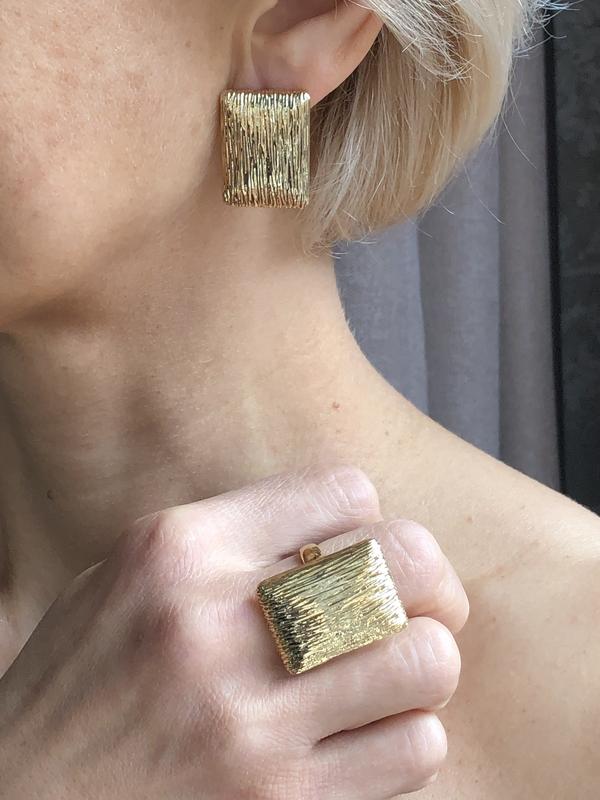 Набор женских украшений ( серьги и кольцо ) . Покрытие золотом 24К . Серьги с итальянским замком идеально садятся на ухо . Размер кольца 19,20