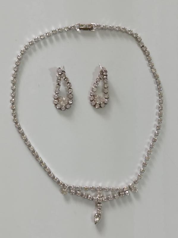 Колье с серьгами, чешская бижутерия, винтаж. Застёжка хорошая. Длина колье 38 см, длина серёжек 3,5 см. Состояние отличное.