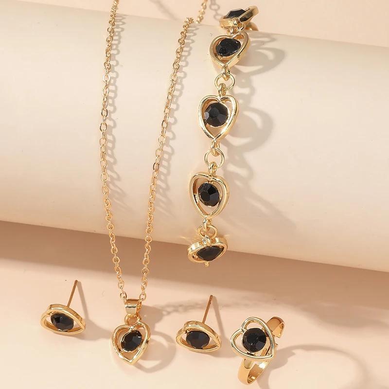 материал -сплав. цвет золото с черными кристаллами 💎 очень красивый😍 в наборе подвеска, серьги,каблочка, браслет.