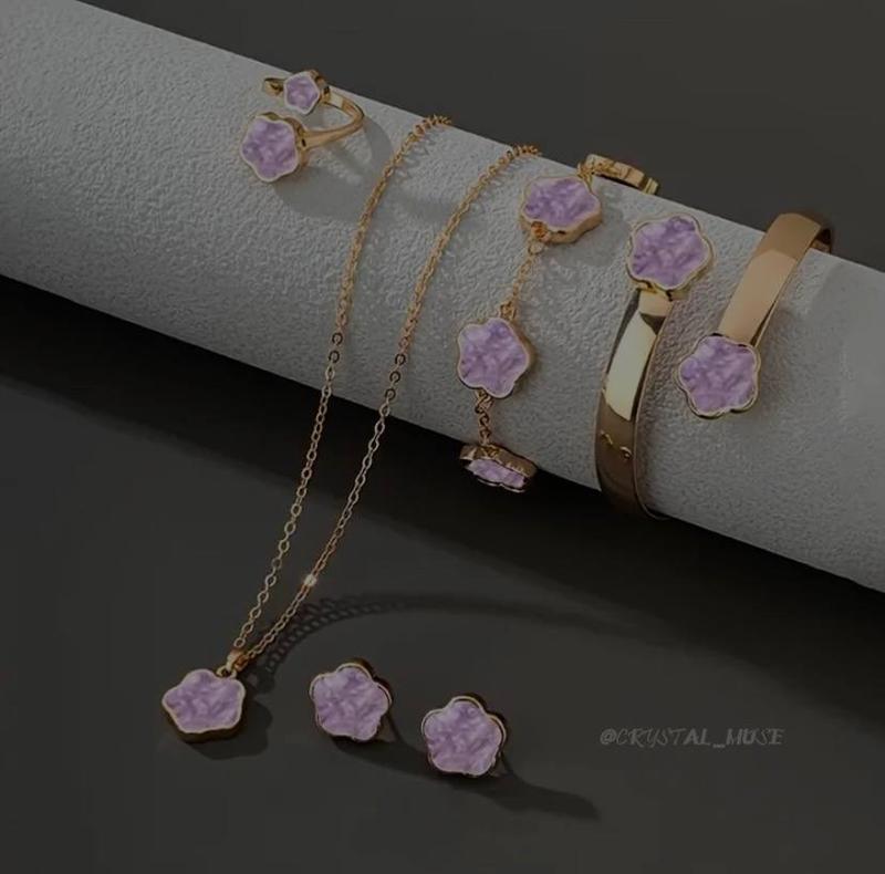 🌸 Квіткова ніжність у кожному дотику 🩵 Розкішний набір ювелірних виробів із 5 елементів: намисто, браслет, сережки, кільце та ще один браслет — ідеальний вибір для витончених образів. Нова модна квіткова колекція для справжніх поціновувачок стилю та елегантності ✨