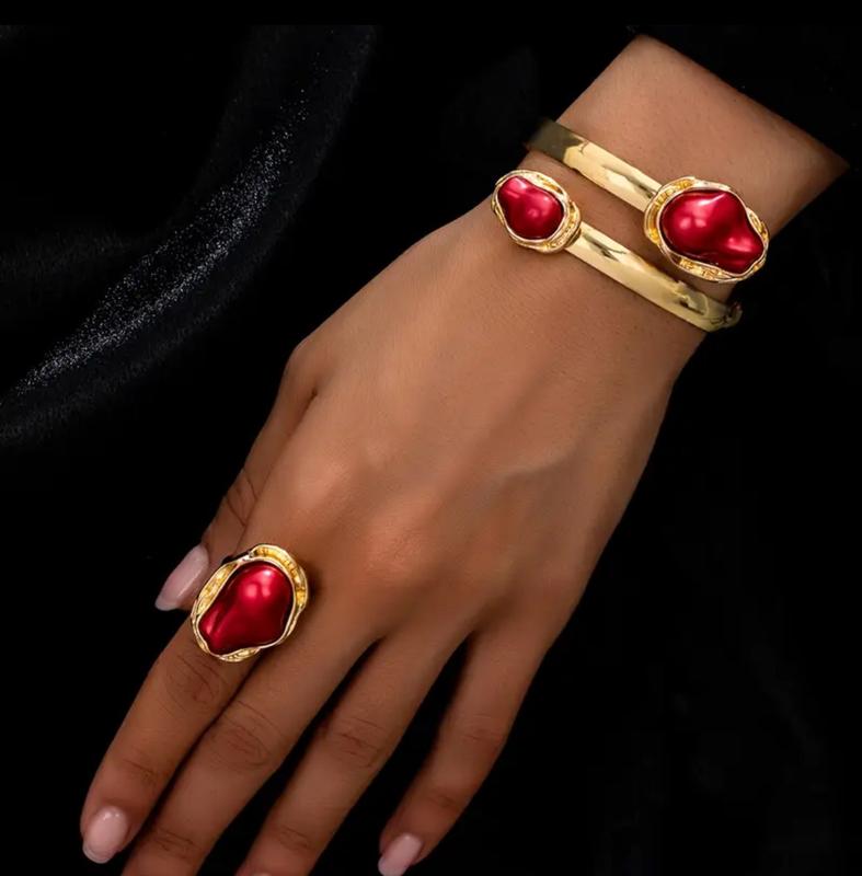 1 Набор Винтажного Барокового Стиля Имитация Ложных Жемчуг Женский Браслет и Кольцо, Сплав с Мозаичным Материалом, для ежедневного Примечательного, все Сезоны.