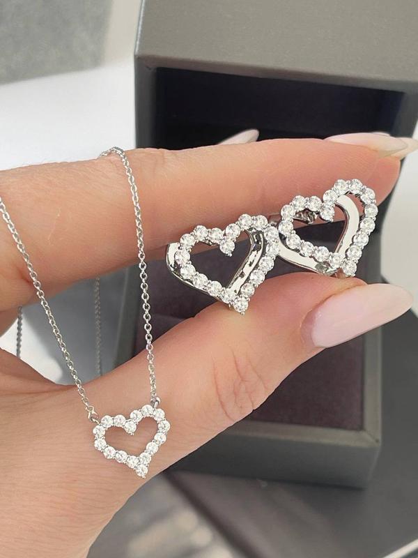 Набор медсталь родий, серьги и колье подвеска, сердечко сердечко в камушках