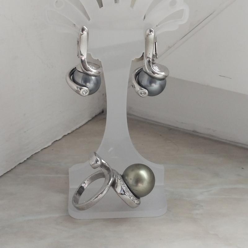 Каблочка и серьги с жемчужинами Размер кольца 17