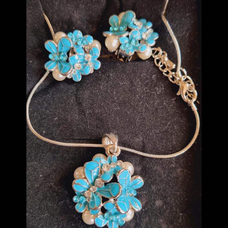 набор бижутерии, подвес на цепочке и клипсы.меет не большие потертости с середины, что при носке не заметно.