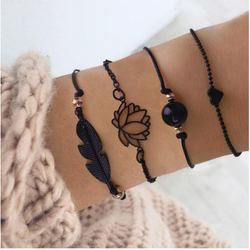 Набор браслетов 4 шт стильные браслеты на руку набором