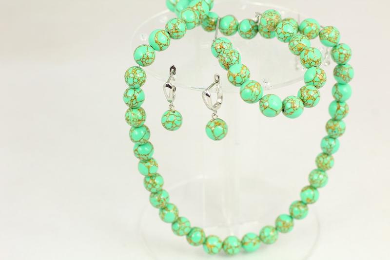 сережки 300 грн браслет 320 грн довжина регулюється буси 590 грн 47 см Набір No name імітація бірюзи сріблястий