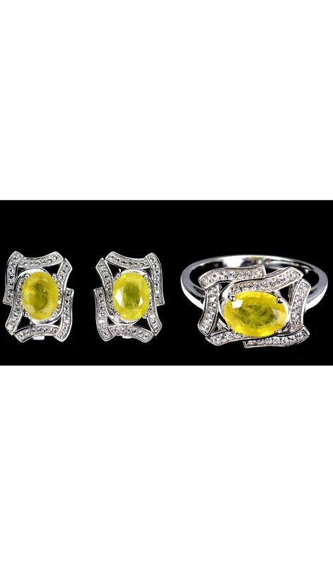 Серебряный набор с желтыми сапфирами и белыми топазами - серьги и кольцо (размер 18.5)